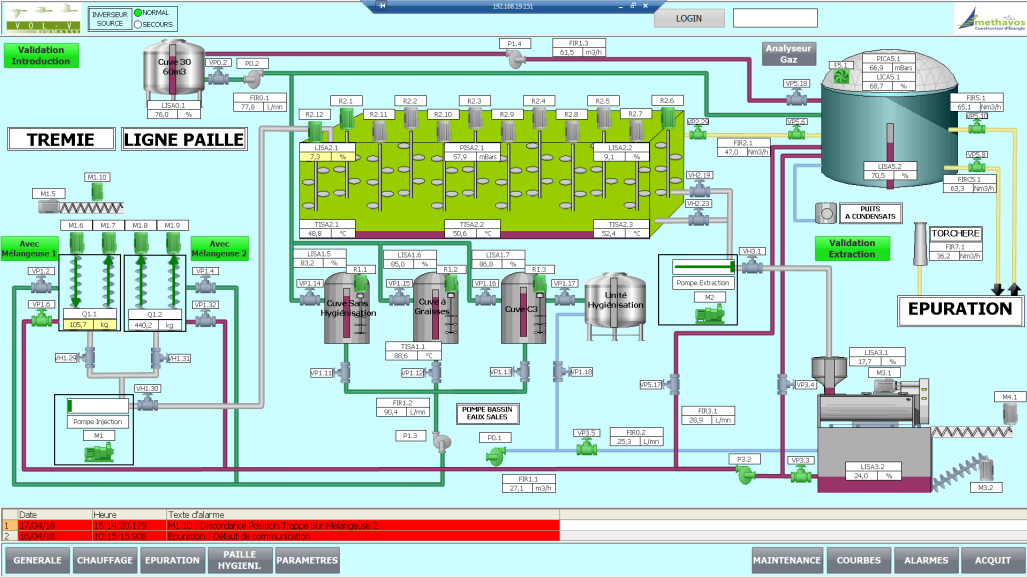 - Raccordement automate de 300 entrées et 100 sorties comprenant l’instrumentation (capteurs de niveau, débitmètres, sonde de température….. ) et les actionneurs (vannes, moteurs, …. )